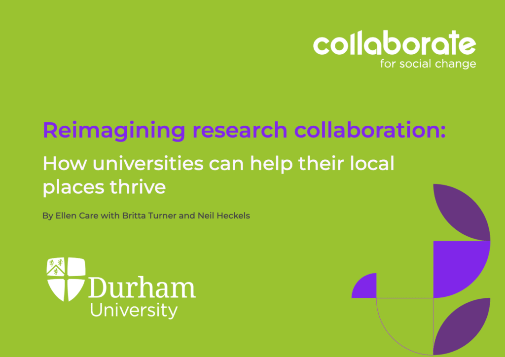 Inspired by learning from a research collaboration in County Durham between Durham University, Durham County Council and Durham Community Action, the report extrapolates from these experiences to explore how the academic sector and local partners can deepen research collaborations to make them more impactful and connected to local life.